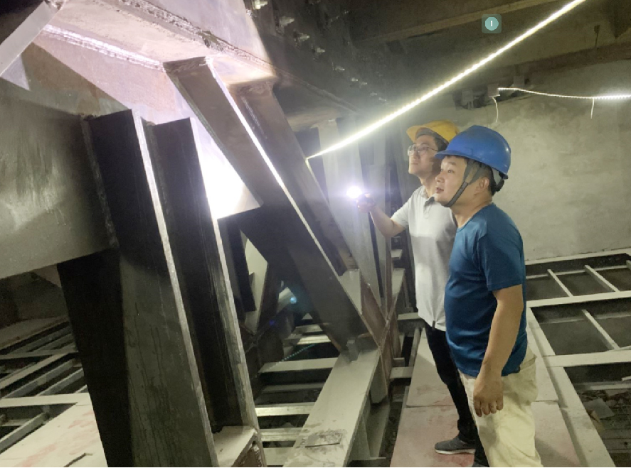 本工程需要在二三層形成大空間,需要拆除一層、二層以及三層的8根混凝土柱,混凝土柱截面尺寸為700*1200,柱底荷載標(biāo)準(zhǔn)值大約為280噸左右。底部柱子拆除之后需用桁架作為轉(zhuǎn)換梁,并且加固4層的原有混凝土梁,使底部新增桁架與加固之后的梁形成工頭受力的轉(zhuǎn)換體系。在進(jìn)行4層相關(guān)區(qū)域橫梁增大截面加固之前,需將底部擬拆除的柱子采用頂撐托換體系完成頂撐受力托換后,對梁底的柱進(jìn)行鑿除并割除鋼筋,以進(jìn)行混凝土梁3面增大截面施工?;炷亮涸龃蠼孛媸┕ね瓿刹⑶一炷吝_(dá)到設(shè)計(jì)強(qiáng)度后方可進(jìn)行底部桁架的安裝。